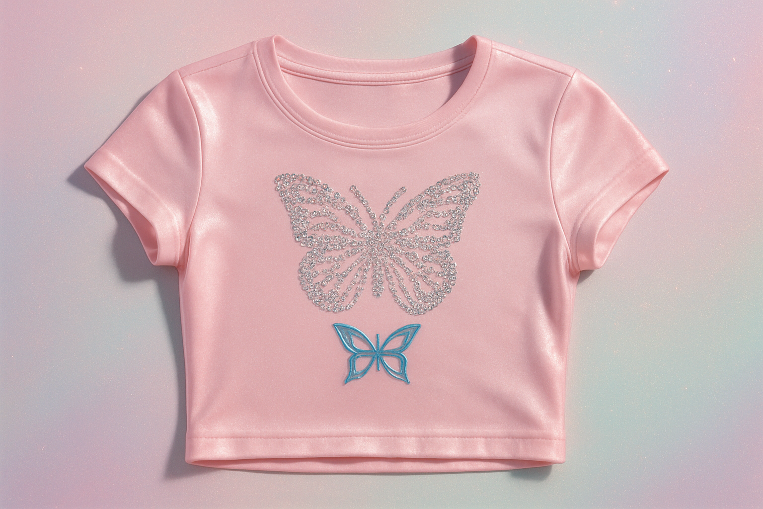 Butterfly & Butterfly Clip Motifs — Definition: whimsical insect graphics and matching hair accessories. example: butterfly-motif tees in Etsy/independent labels (2024–2026 viral drops). Technique: sublimation or puff print plus appliqué.