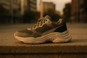 Finish with shoes (platforms, chunky sneakers) — Platforms or chunky sneakers complete the silhouette. Product suggestion: Buffalo-style platforms or chunky Nike/Adidas sneakers; retailer example: ASOS curated footwear. Photographic tip: shoot low-angle full-length shots to show footwear proportion.